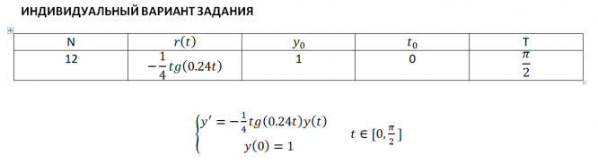 Лабораторная работа 4: Численное решение задачи коши вариант 12