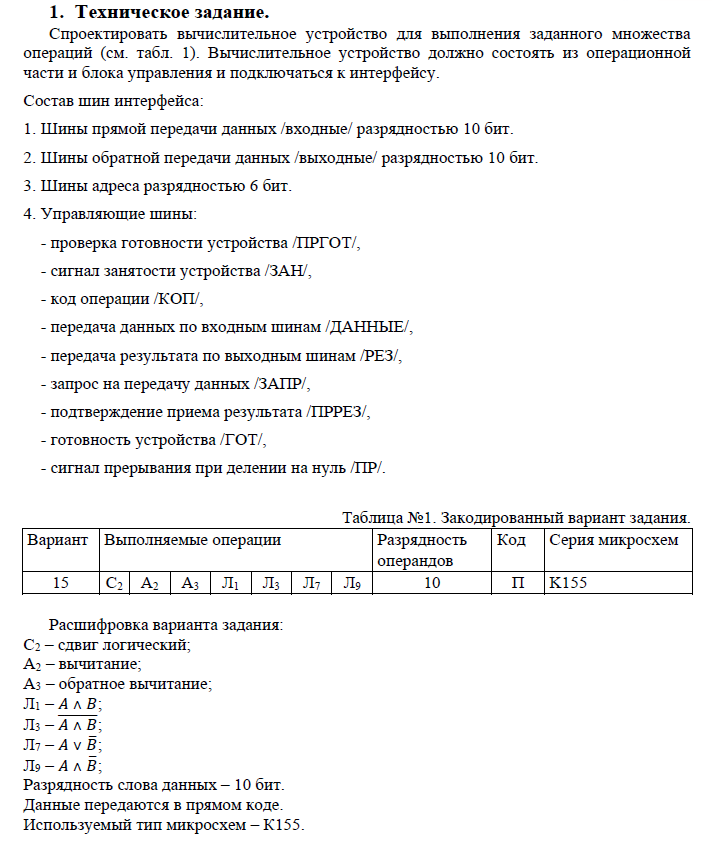 Курсовая работа: Проектирование операционного устройства вариант 15