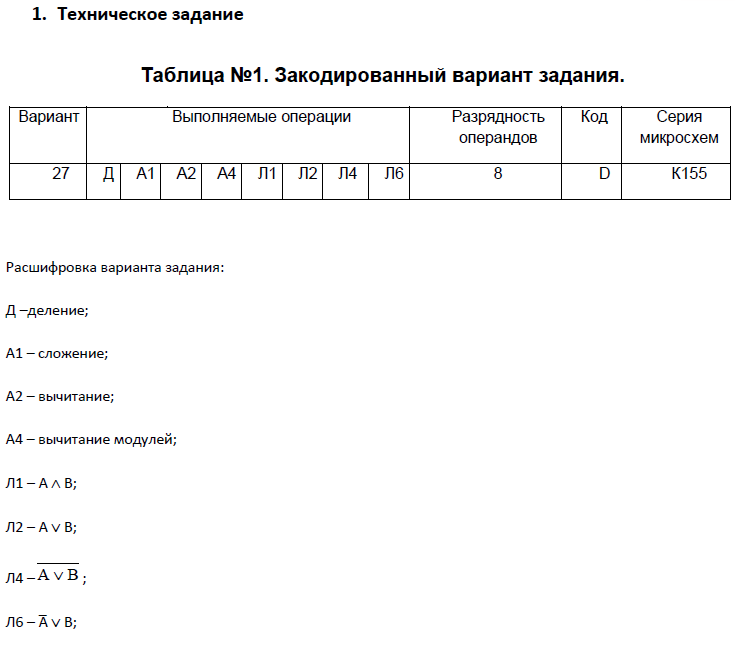 Курсовая работа: Проектирование операционного устройства вариант 27