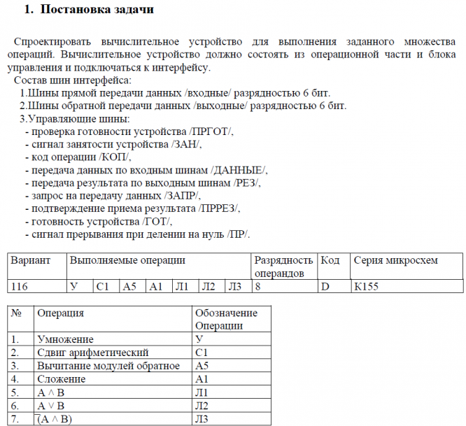 Курсовая работа: Вычислительное устройство для выполнения заданного множества операций вариант 116