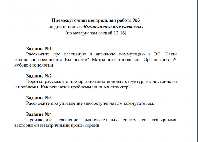Промежуточная контрольная работа №3 по дисциплине: «Вычислительные системы» (по материалам лекций 12-16)
