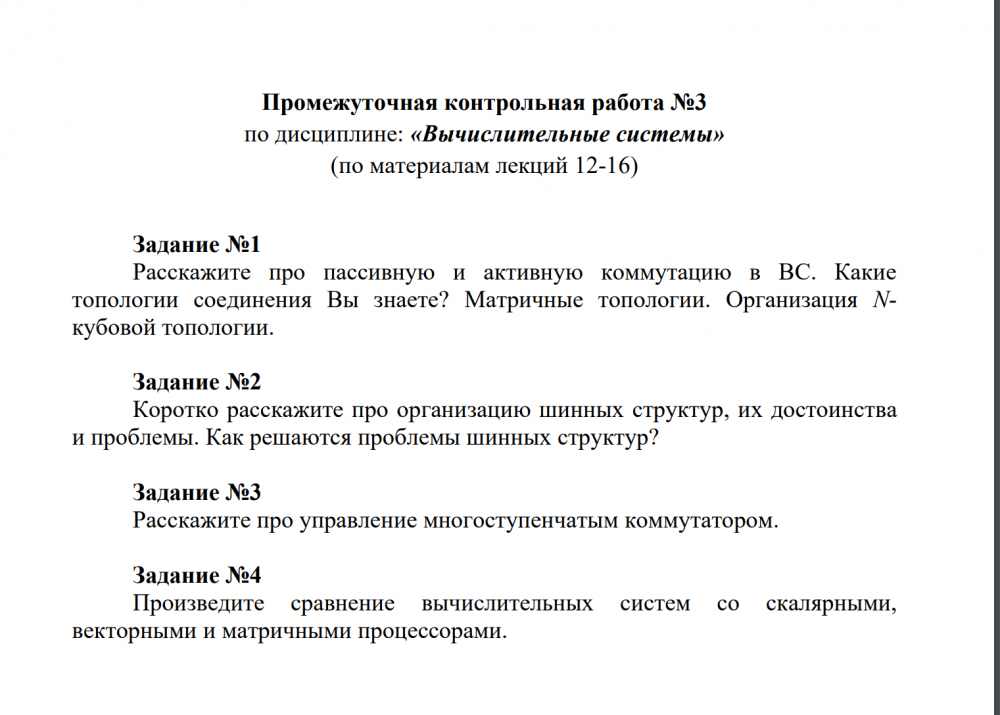 Промежуточная контрольная работа №3 по дисциплине: «Вычислительные системы» (по материалам лекций 12-16)