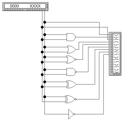 • В среде Electronics Workbench создать электрическую схему по изучению всех семи логических элементов.