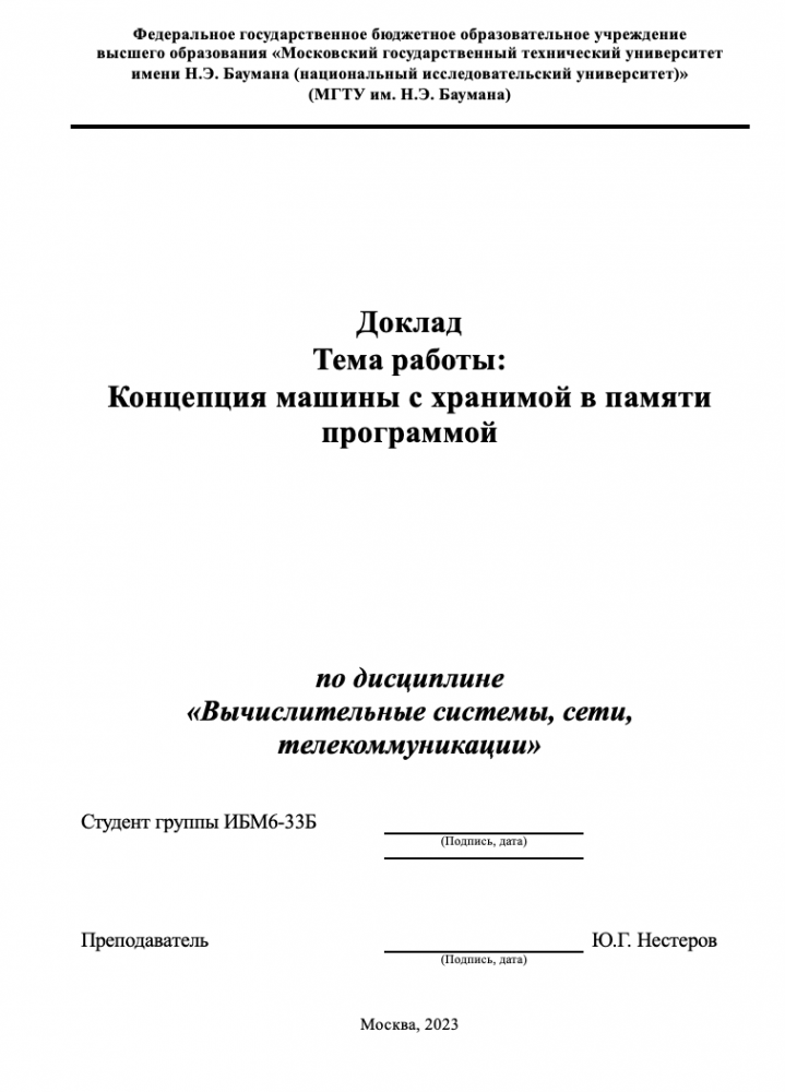 Для студентов МГТУ им. Н.Э.Баумана по предмету Вычислительные системы, сети и телекоммуникацииКонцепция машины с хранимой в памяти программойКонцепция машины с хранимой в памяти программой
