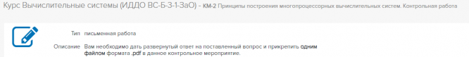 Для студентов ИДДО НИУ «МЭИ» по предмету Вычислительные системыПомогу вам сдать - КМ-2 Принципы построения многопроцессорных вычислительных систем. Контрольная работаПомогу вам сдать - КМ-2 Принципы построения многопроцессорных вычислительных систем. Контрольная работа