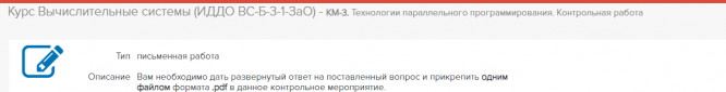 Для студентов ИДДО НИУ «МЭИ» по предмету Вычислительные системыПомогу вам сдать - КМ-3. Технологии параллельного программирования. Контрольная работаПомогу вам сдать - КМ-3. Технологии параллельного программирования. Контрольная работа