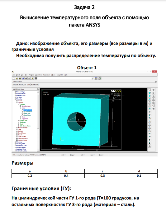 Задача 2 Вычисление температурного поля объекта с помощью пакета ANSYS