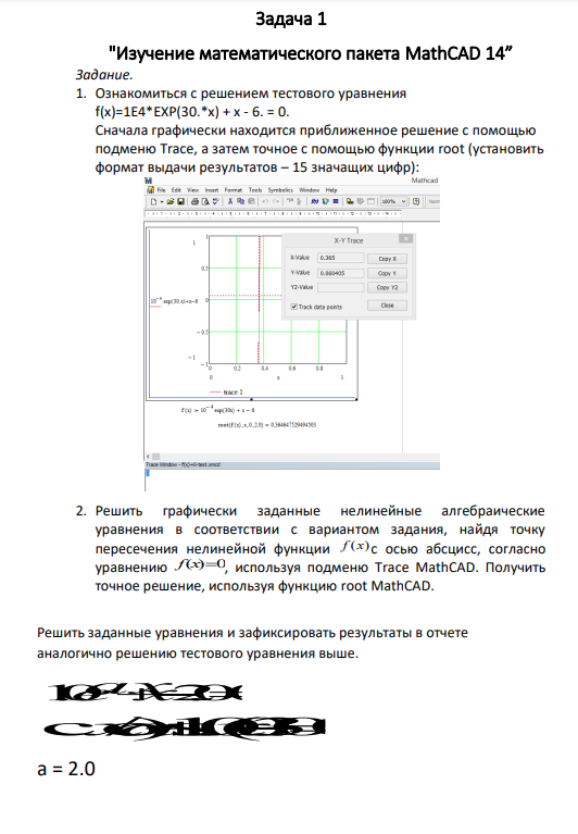 Задача 1 "Изучение математического пакета MathCAD 14”