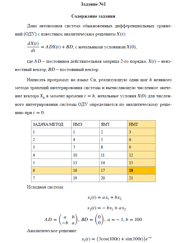 Отчёт по практике 1, 2: Отчет по практике (Задача №6, неявный метод трапеций (НМТ)) вариант 18