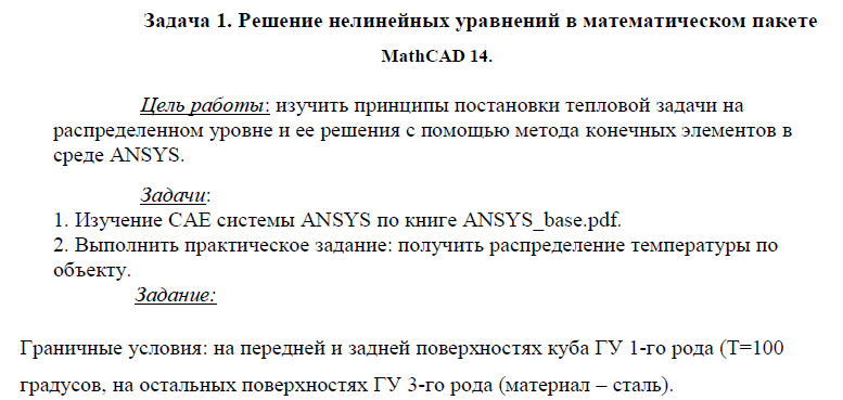 Для студентов МГТУ им. Н.Э.Баумана по предмету Вычислительный практикумРешение нелинейных уравнений в математическом пакете MathCAD 14. Вычисление температурного поля объекта с помощью пакета ANSYSРешение нелинейных уравнений в математическом пакете MathCAD 14. Вычисление температурного поля объекта с помощью пакета ANSYS
