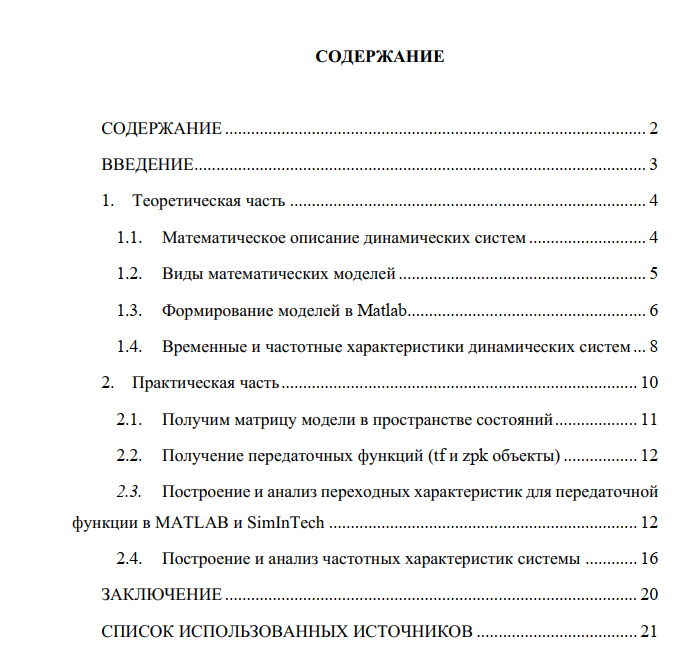 Отчёт по практике: Функциональные возможности программных сред MATLAB и SimInTech в области задач теории автоматического управления