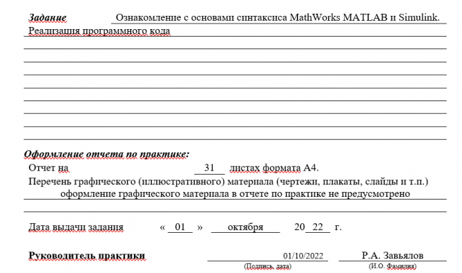 Отчёт по практике: Ознакомление с основами синтаксиса MathWorks MATLAB и Simulink
