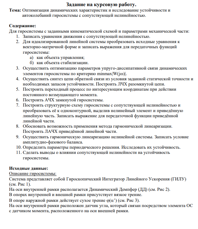 Тема: Оптимизация динамических характеристик и исследование устойчивости и автоколебаний гиросистемы с сопутствующей нелинейностью.