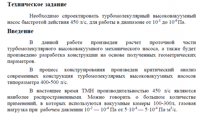 Для студентов МГТУ им. Н.Э.Баумана по предмету Высоковакуумные механические насосыПроектирование турбомолекулярного высоковакуумного насоса с быстротой действия 450 л/с, для работы в диапазоне от 10^-1 до 10^-6 ПаПроектирование турбомолекулярного высоковакуумного насоса с быстротой действия 450 л/с, для работы в диапазоне от 10^-1 до 10^-6 Па