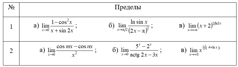 Задача 2.2 Используя правила Лопиталя, вычислить представленные пределы.