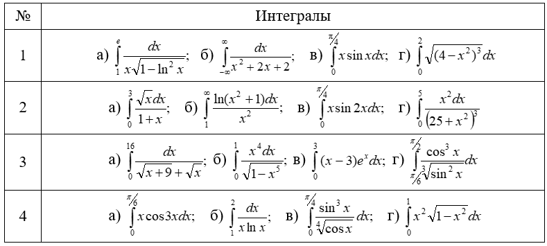 Задача 5.1 Вычислить определённые интегралы. Для несобственных интегралов решить вопрос об их сходимости или расходимости