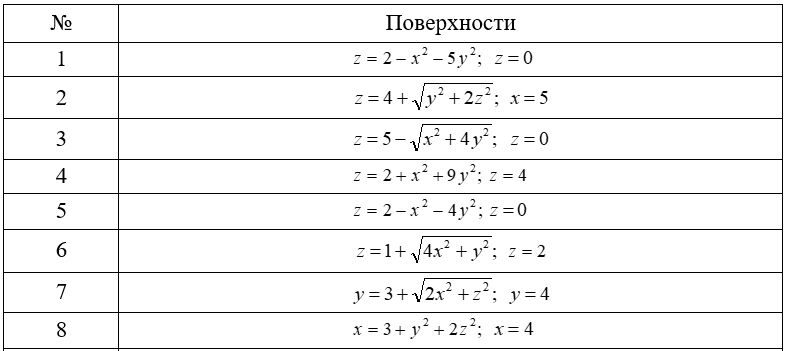 Задача 5.3 Вычислить объём тела, заданного представленными уравнениями, используя его поперечные сечения