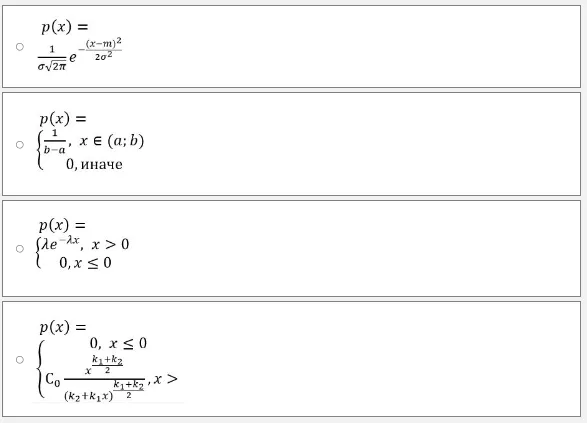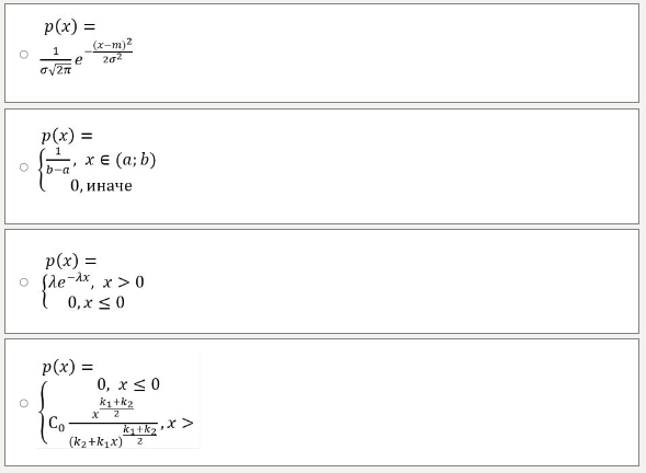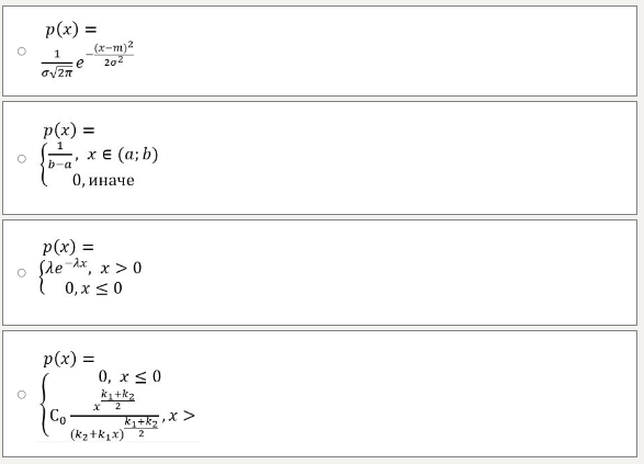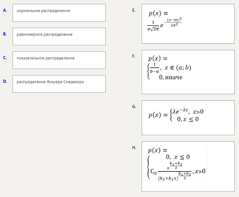 Установите соответствие между законом распределения случайной величины и формулой ее плотности: