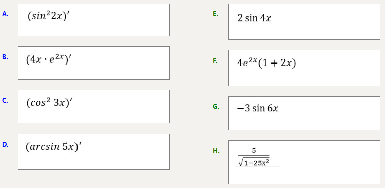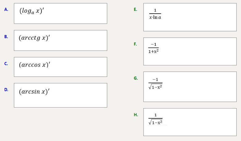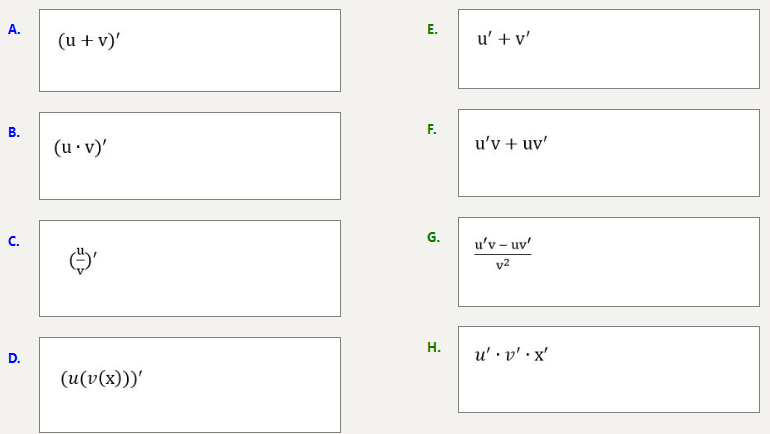 Установите соответствие между правилами дифференцирования и соответствующими формулами: