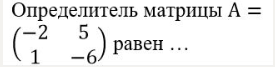 Определитель матрицы А= (-2 5) (1 -6)равен … Тип ответа: Текcтовый ответ