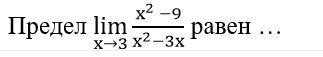 Предел lim x>3 x2 -9/х2-3х равен ...