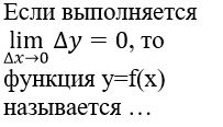 Если выполняется limΔx-0 Δу = 0, то функция y=f(x)называется …