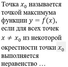 Точка хо называется точкой максимума функции у = f(x), если для всех точек х # хо из некоторой окрестности точки хо выполняется неравенство ...