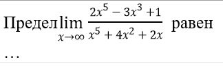 Предел lim X-> 2x5 - 3x3 +1/x5 + 4x2 + 2x равен ...