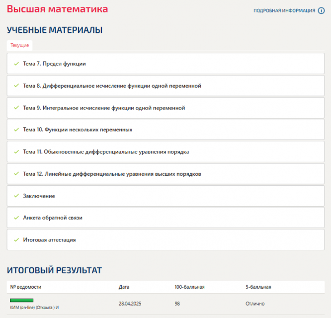 Высшая математика Синергия Ответы на тесты 7-12, итоговый тест, компетентностный