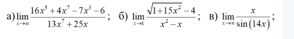 а)lim x→∞ 16x5 + 4x7 - 7x3 - 6/ 13x7 +25x