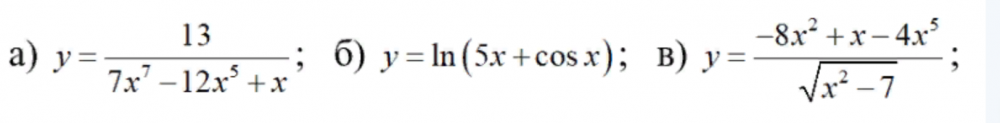 в) y = -8x2 + x - 4x5 / √x2 - 7
