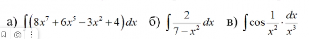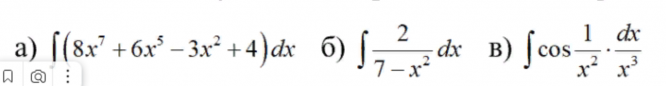 а) ∫ (8x7 + 6x5 - 3x2 + 4) dx