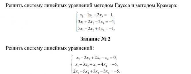 Решите систему линейных уравнений методом Гаусса и методом Крамера