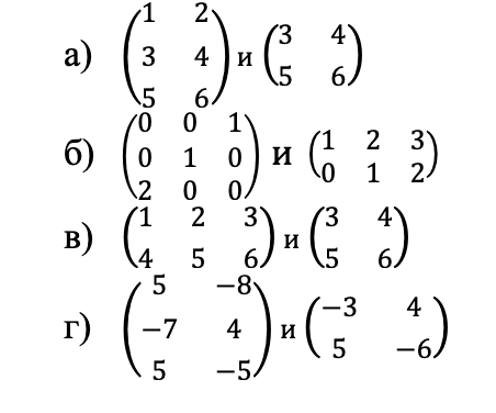 40. Произведением матриц A = ((2, −5), (−3, 6), (4, 7)) и B = ((−3, 4), (5, −9)) называется матрица C, равная …