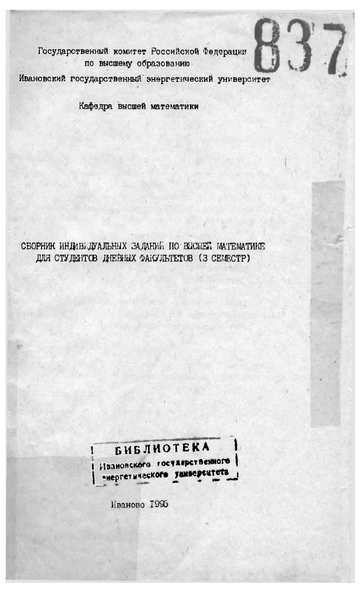 Для студентов ИГЭУ им. Ленина по предмету Высшая математикаСковорода Б.Ф., Королева М.П., Астраханцев В.В., Шаповалов А.В., Магницкий В.А., Минько С.А., Воронова А.С. - Сборник индивидуальных заданий по высшейСковорода Б.Ф., Королева М.П., Астраханцев В.В., Шаповалов А.В., Магницкий В.А., Минько С.А., Воронова А.С. - Сборник индивидуальных заданий по высшей