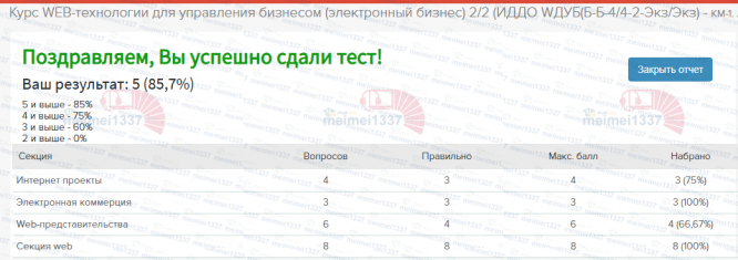 Курс WEB-технологии для управления бизнесом (электронный бизнес) - КМ-1. Web-представительства в Интернет - 85,7%