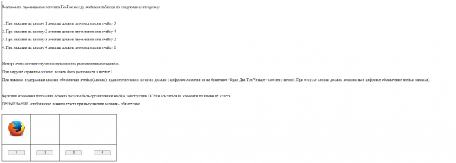Реализовать перемещение логотипа FireFox между ячейками таблицы