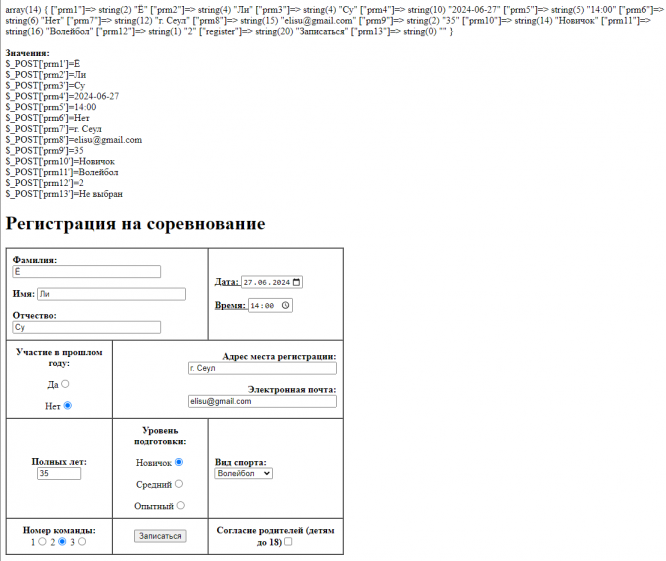 Задание: на базе формы, использованной в работе № 1 1-ой части курса Web-технологии, pазработать web-приложение для отправки данных на сервер.