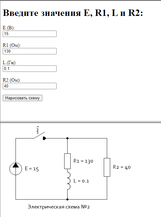 Задание: С помощью средств PHP нарисовать электрическую схему представленную на прикрепленном рисунке schema.jpg. Пример внешнего вида приложения, представлен на прикрепленном рисунке pattern.jpg.