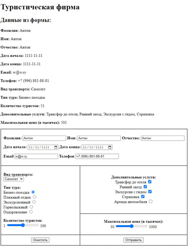 Задание: на базе формы, использованной в работе № 1 1-ой части курса Web-технологии, pазработать web-приложение для отправки данных на сервер: