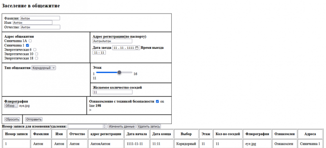 5. Необходимо предусмотреть возможность добавления строк, изменения данных любой строки в файле и удаления сроки/строк (полностью) из файла databases.txt в соответствии со значением параметра 'Номер записи' исходной формы. Для этой операции можно ввести дополнительную кнопку/кнопки или использовать кнопку reset/Очистить.