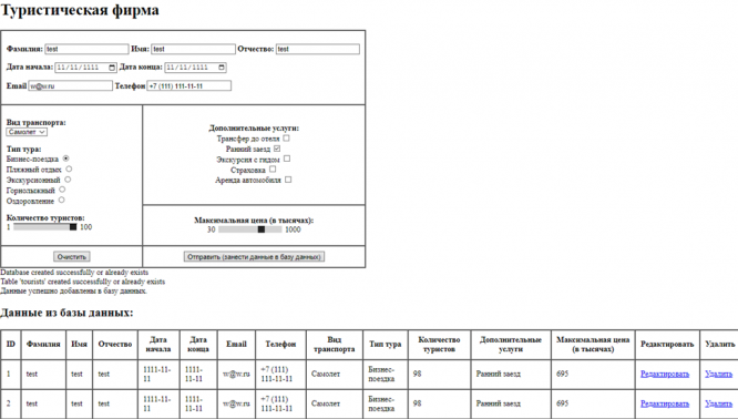 Задание: используя в качестве основы веб-приложение созданное в письменной работе № 4, разработать дополнительный функционал, позволяющий редактировать и удалять записи в базе данных по idили другому уникальному идентификатору записи.