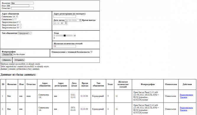 Задание: используя в качестве основы веб-приложение созданное в письменной работе № 4, разработать дополнительный функционал, позволяющий редактировать и удалять записи в базе данных по idили другому уникальному идентификатору записи.