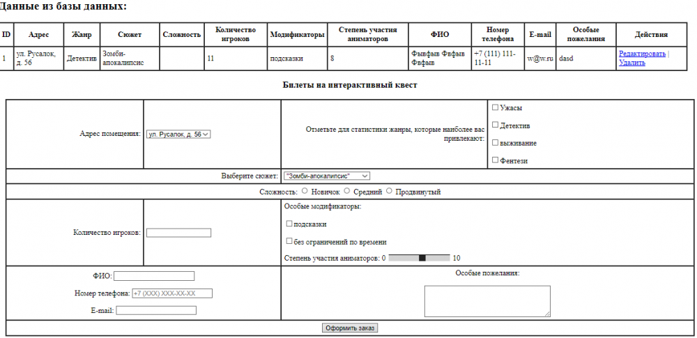 Задание: используя в качестве основы веб-приложение созданное в письменной работе № 4, разработать дополнительный функционал, позволяющий редактировать и удалять записи в базе данных по idили другому уникальному идентификатору записи.