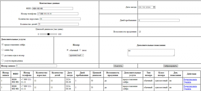 Задание: используя в качестве основы веб-приложение созданное в письменной работе № 4, разработать дополнительный функционал, позволяющий редактировать и удалять записи в базе данных по idили другому уникальному идентификатору записи.