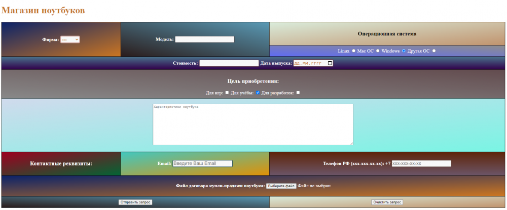 Далее, для наглядности, приведен пример (делать его не надо, у вас другая форма) внешнего вида html-формы. Что-то подобное должно получиться и у вас.