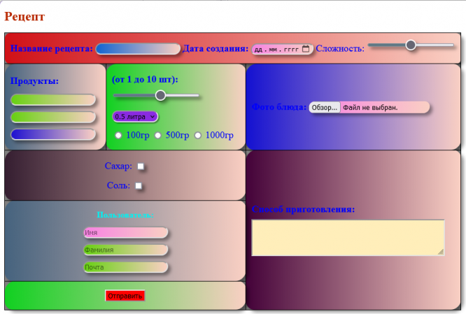 Главная » Учебные материалы » WEB-технологии » Домашние задания » ИДДО НИУ «МЭИ» » Несколько классов/семестров » Номер КМ-2 » КМ-2. Основы каскадных таблиц стилей - CSS. Спецсимволы в HTML. Вариант рецепт