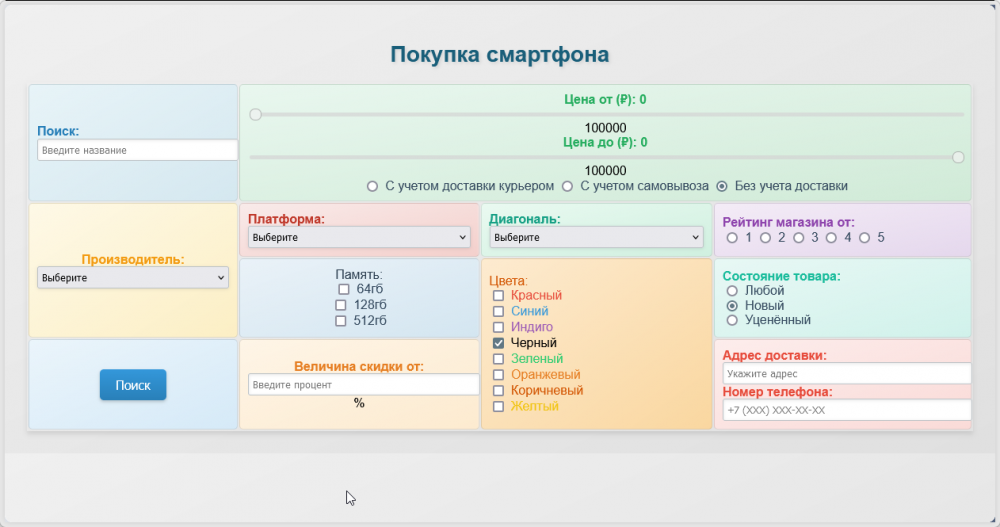 ДЗ КМ-3: КМ-3. Основы JavaScript - обработка событий, проверка ввода данных в форму. Вариант покупка смартфона