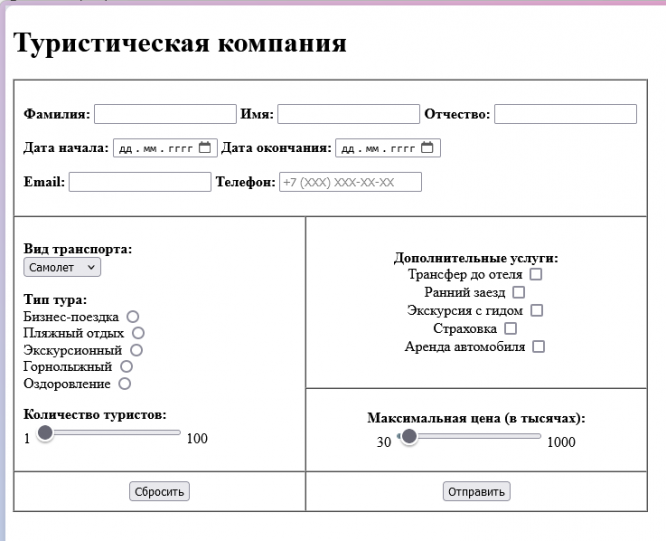 КМ-6. Передача параметров между сценариями (скриптами) PHP. Отправка данных на сервер с помощью форм. Вариант туристическая фирма