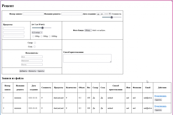 Главная » Учебные материалы » WEB-технологии » Домашние задания » ИДДО НИУ «МЭИ» » Несколько классов/семестров » Номер КМ-7 » КМ-7. Запись, обработка и извлечение информации из файлов на диске. Вариант рецепт